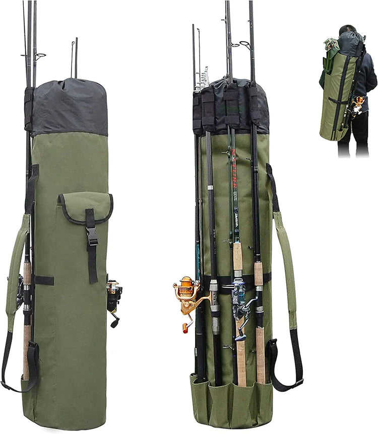 5 rods and reels pouch outside, 1 lateral pocket and 1 large interior compartment. Enough to hold your fishing rod, fishing reel, fishing bait and other fishing tools in order without any mess.
